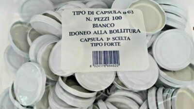 Modello compatibile al 100% con tutti i vasi in vetro standard e con tutte le bottiglie passata L’inserzione si riferisce a una singola confezione da 100 capsule. Certificate per il contatto con gli alimenti Utilizzabili una sola volta in caso di bollitura
