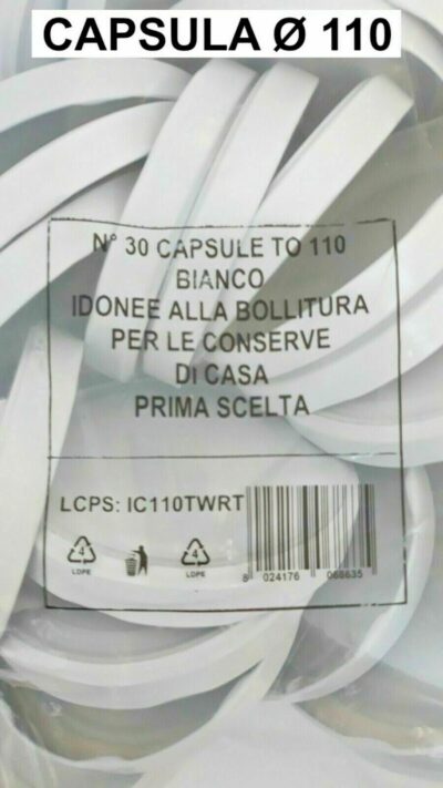 Modello compatibile al 100% con tutti i vasi in vetro standard e con tutte le bottiglie passata L’inserzione si riferisce a una singola confezione da 30 capsule. Certificate per il contatto con gli alimenti Utilizzabili una sola volta in caso di bollitura